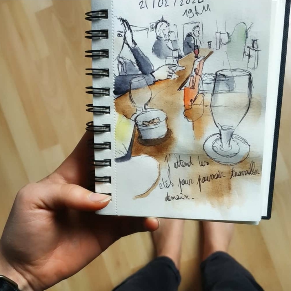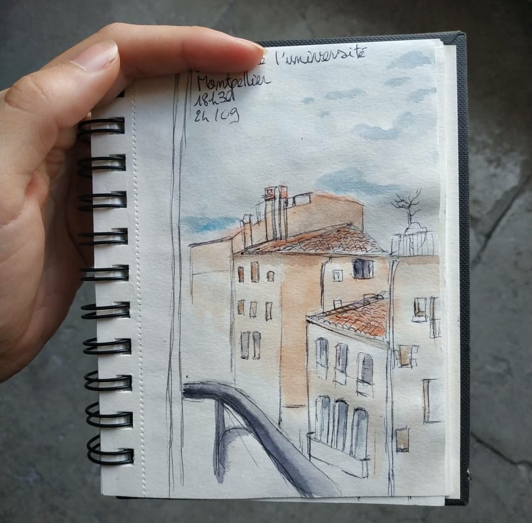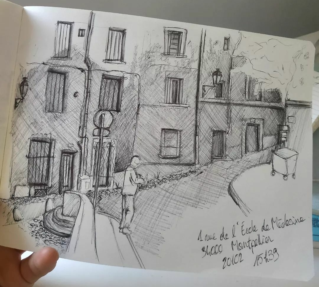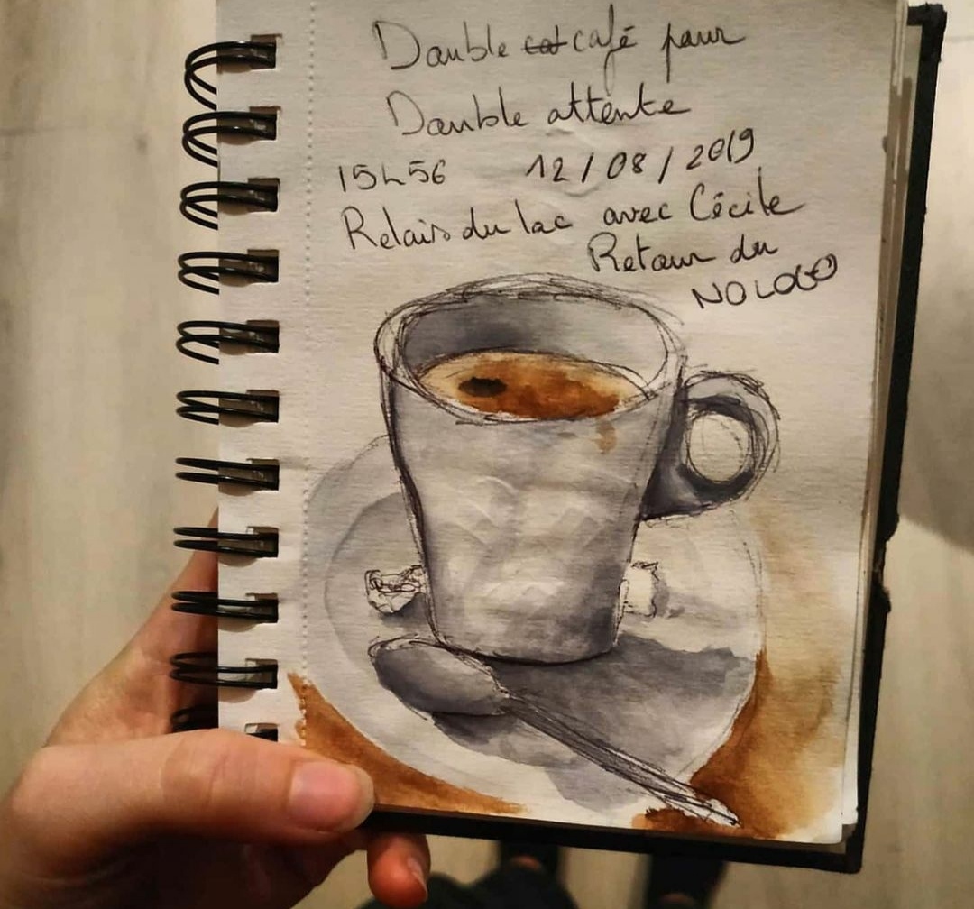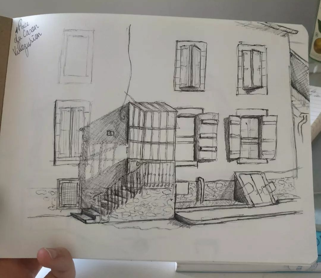La grande partie de ces croquis sont réalisé au stylo bille noir et complété par de l’aquarelle.