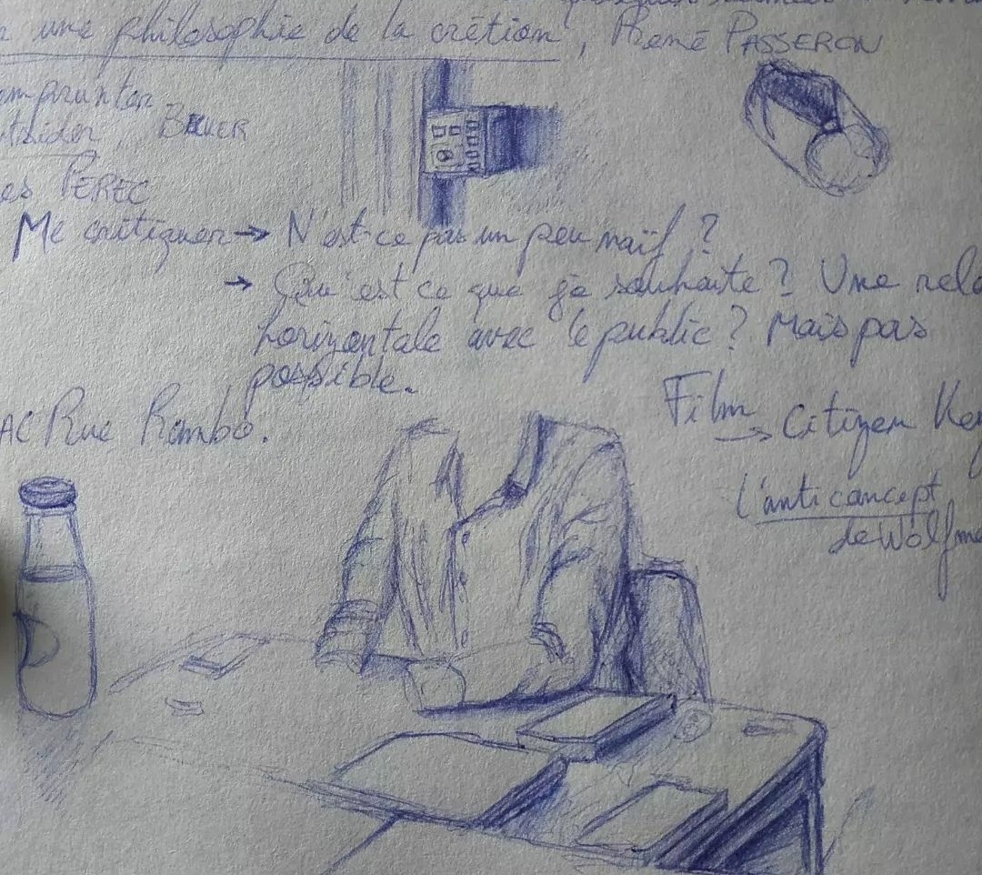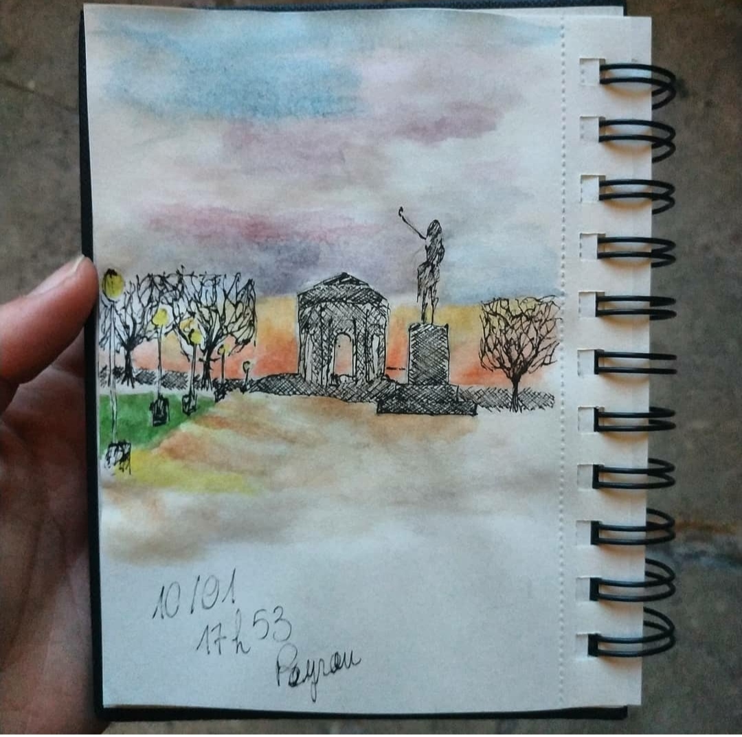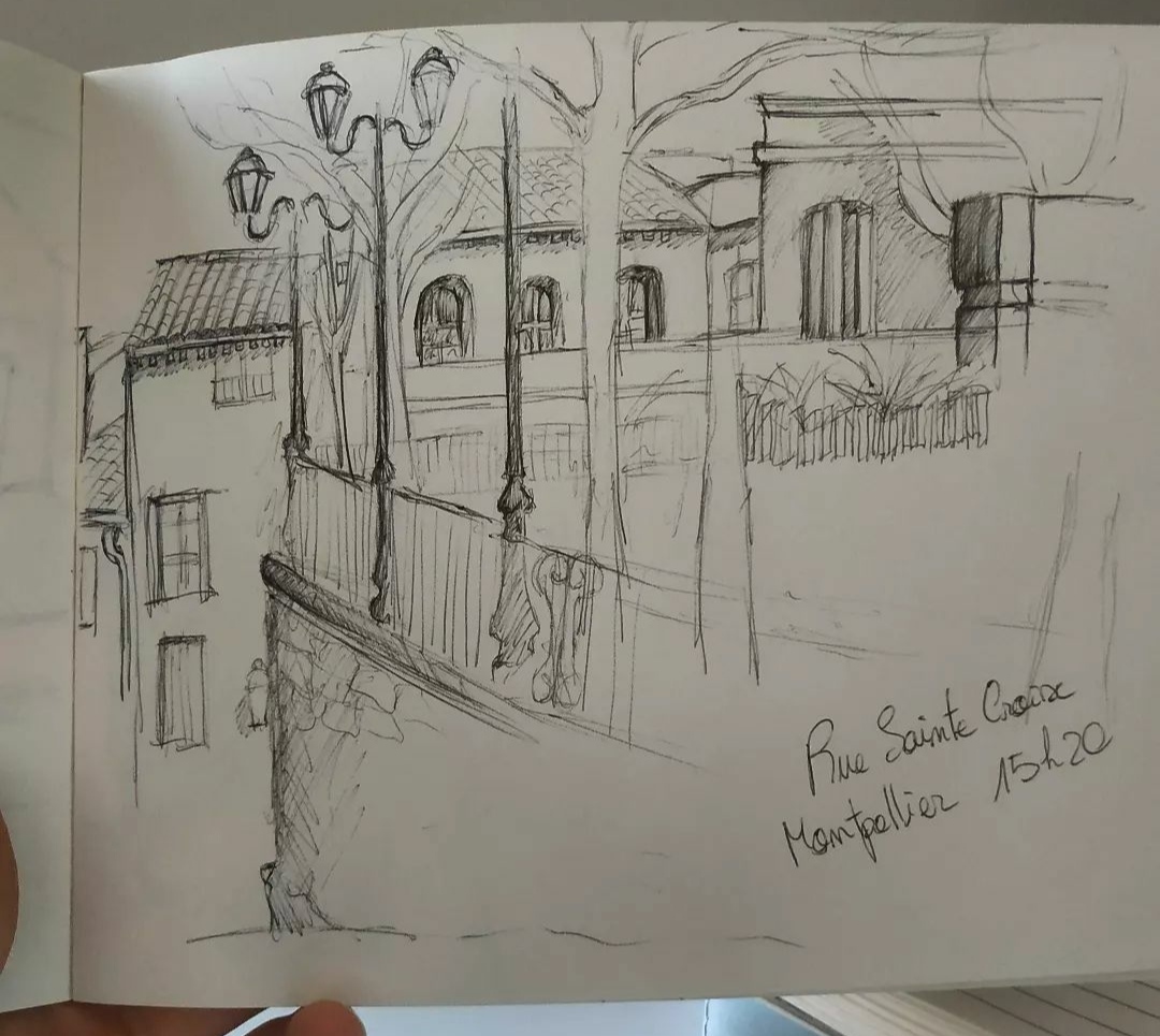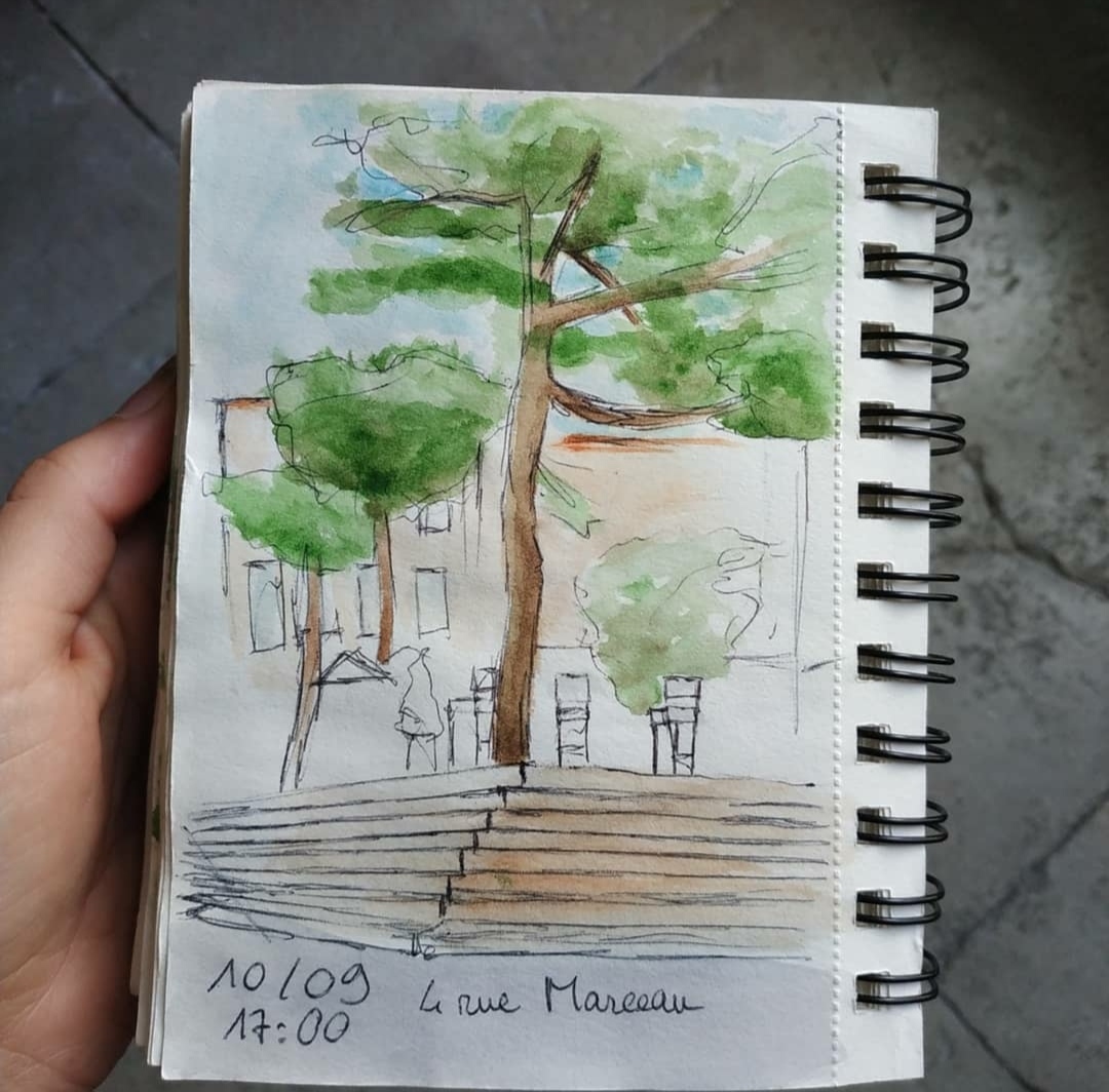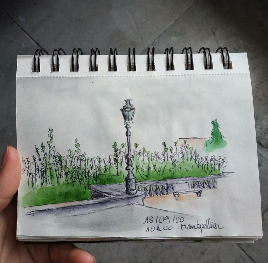 La grande partie de ces croquis sont réalisé au stylo bille noir et complété par de l’aquarelle.