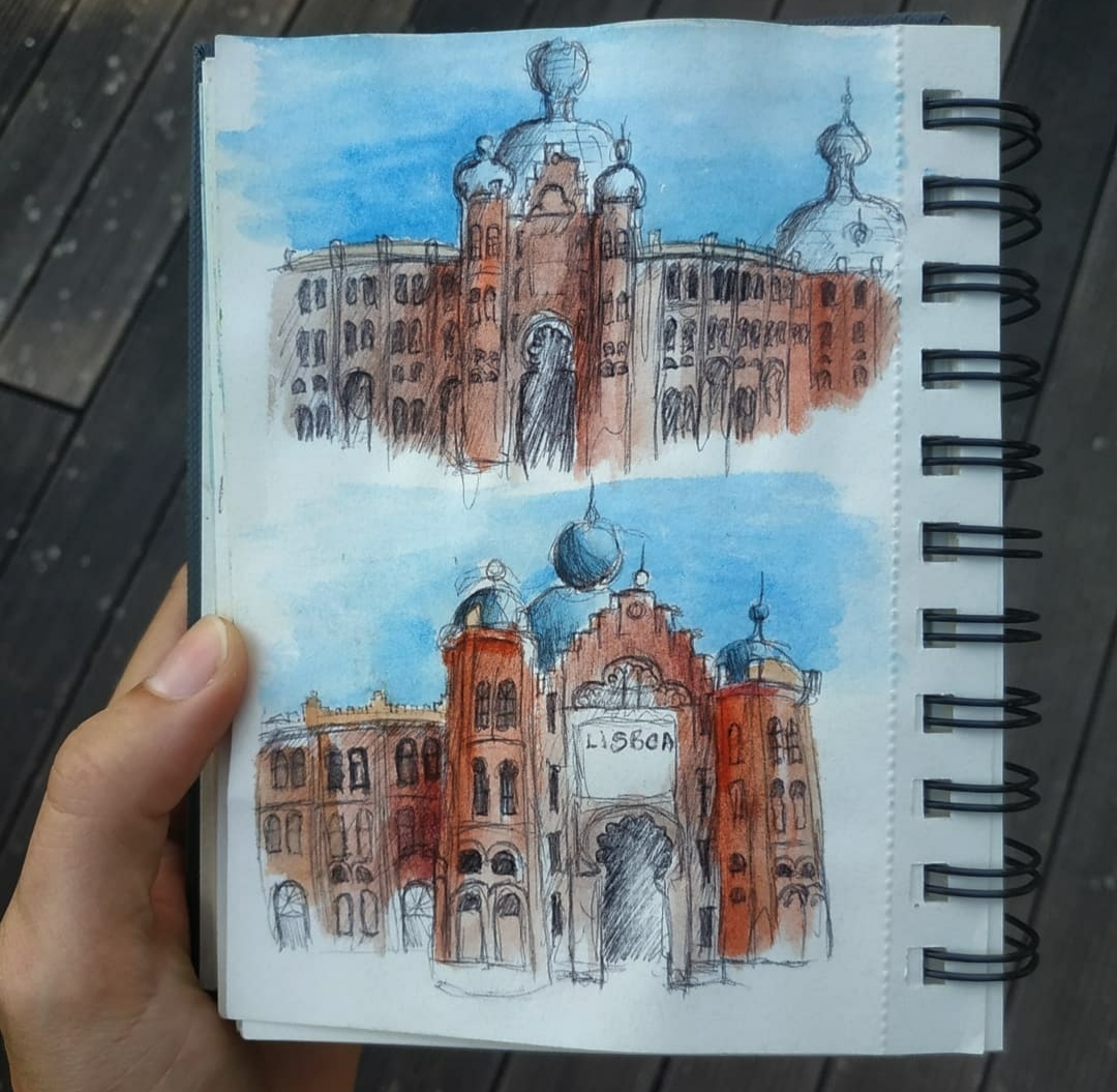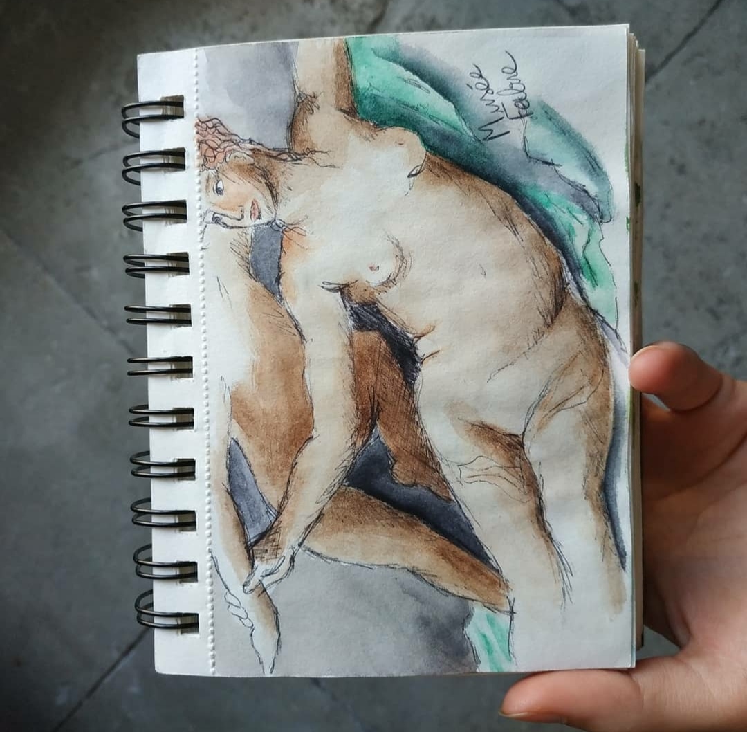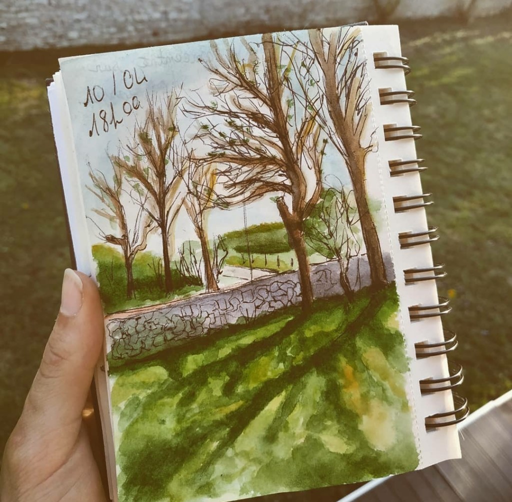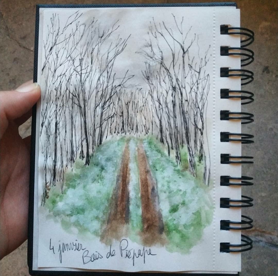La grande partie de ces croquis sont réalisé au stylo bille noir et complété par de l’aquarelle.