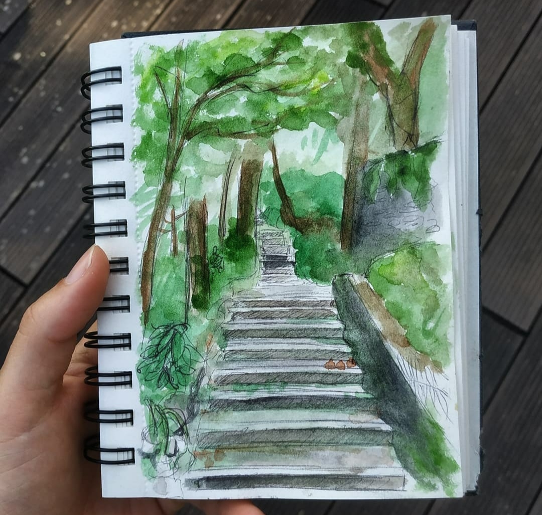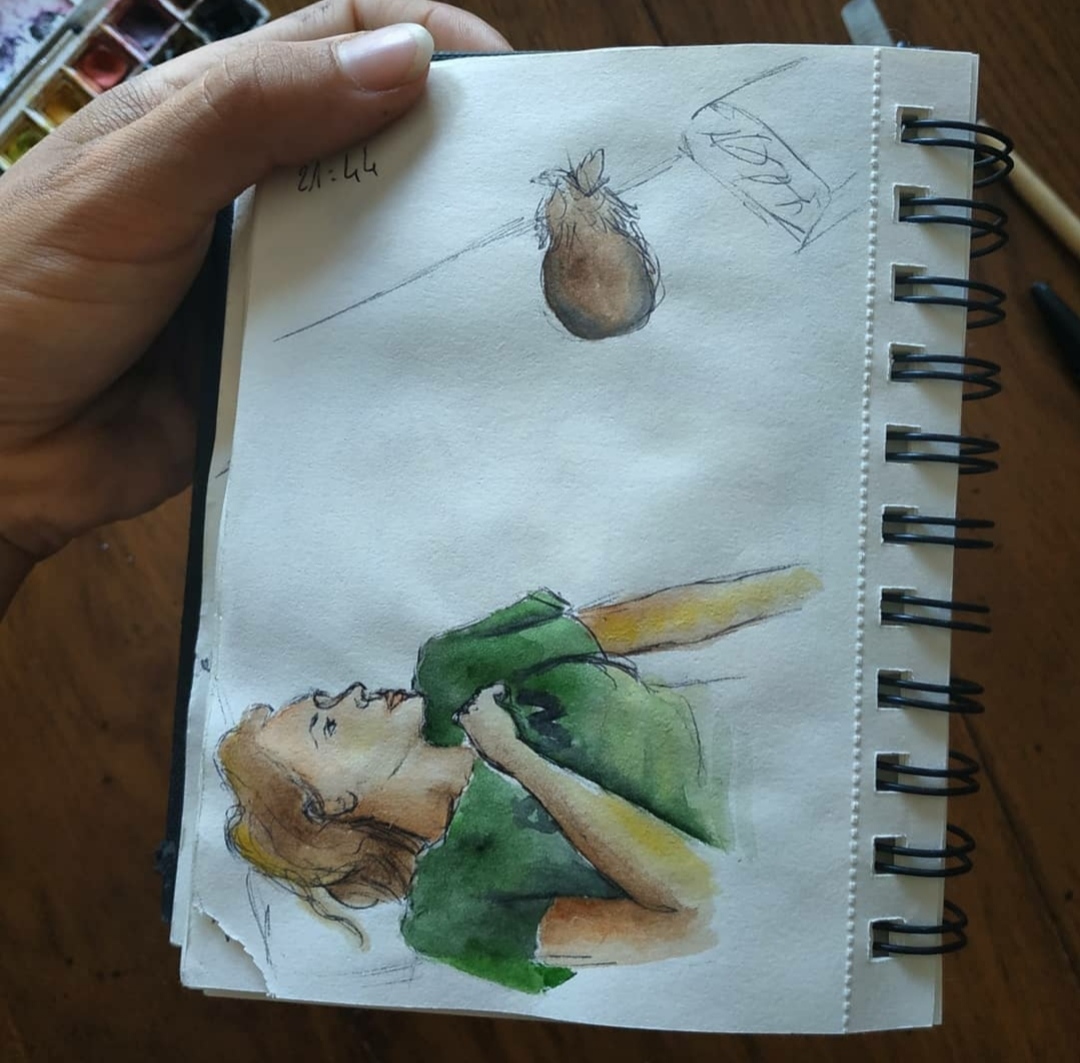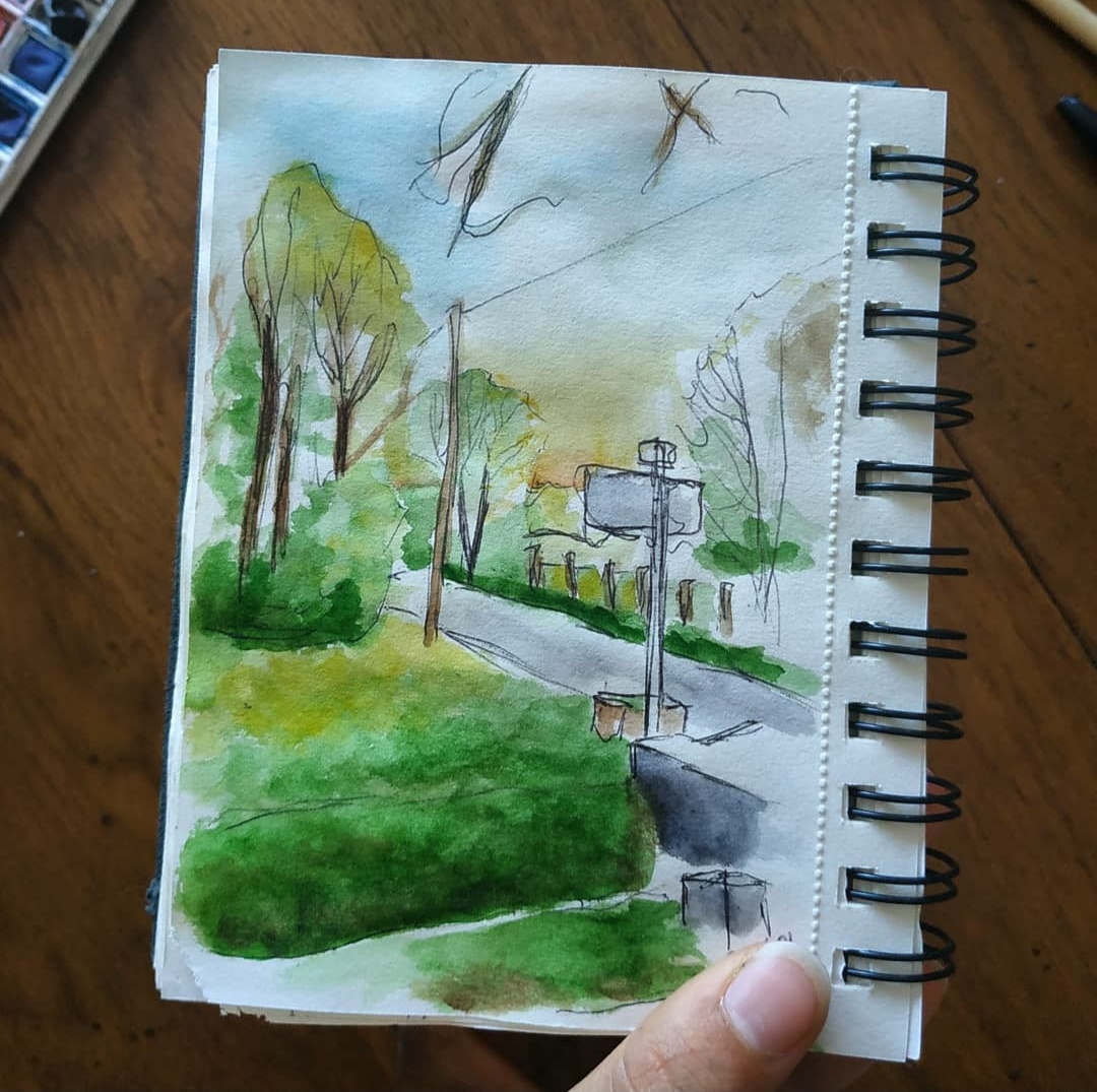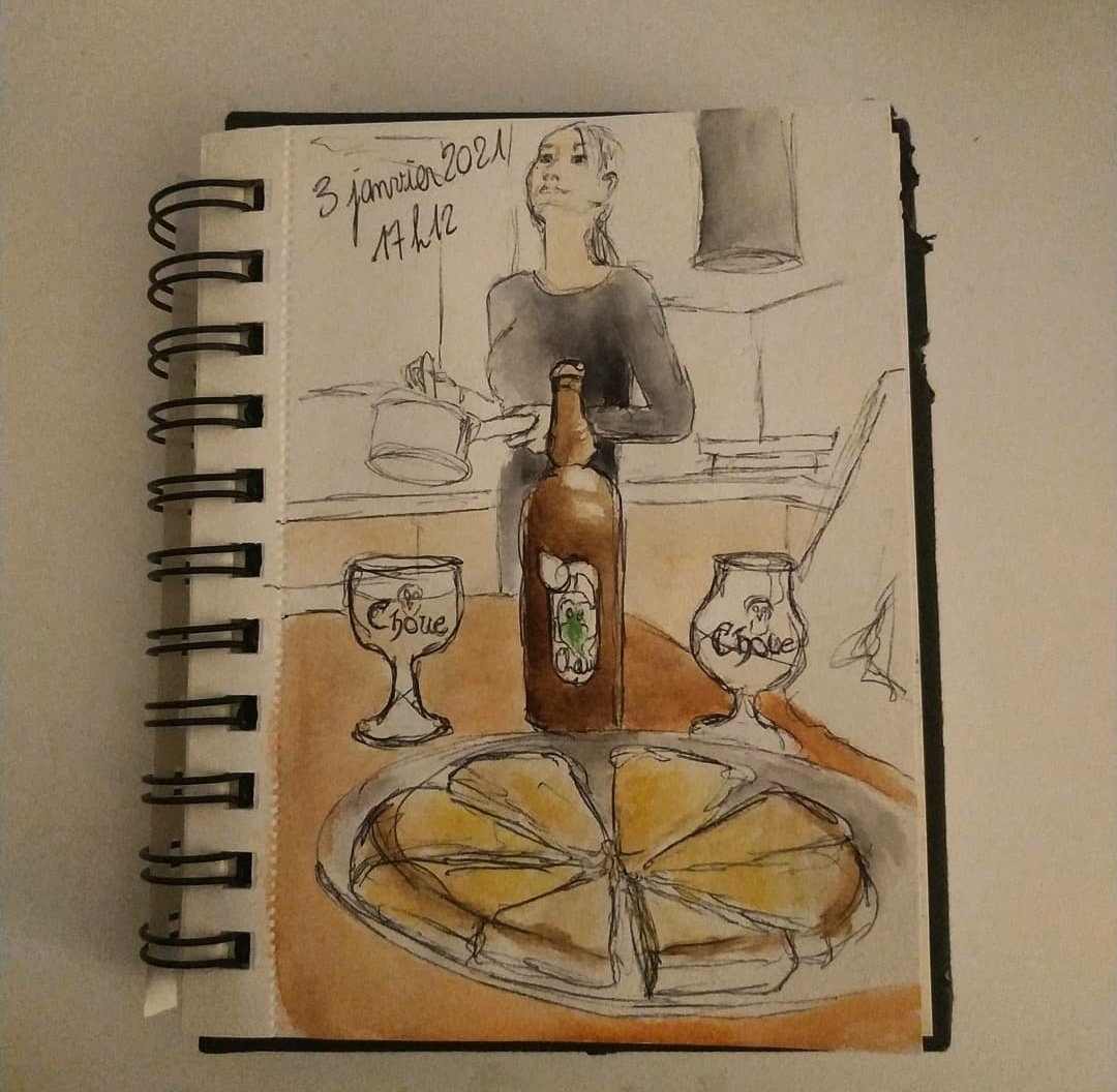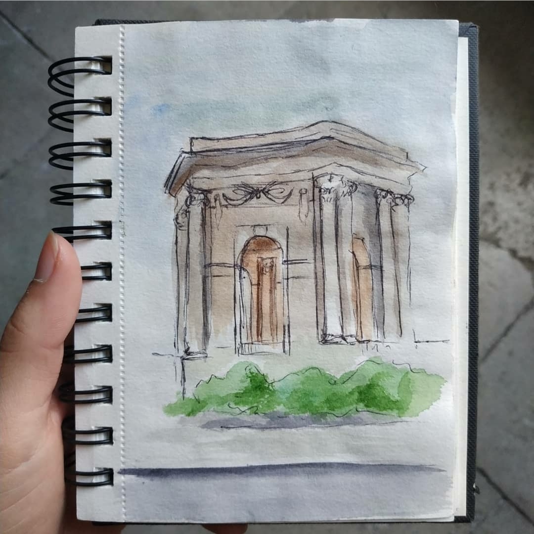 La grande partie de ces croquis sont réalisé au stylo bille noir et complété par de l’aquarelle.