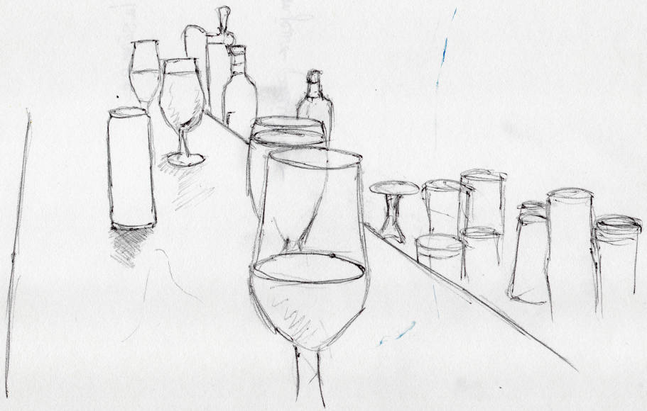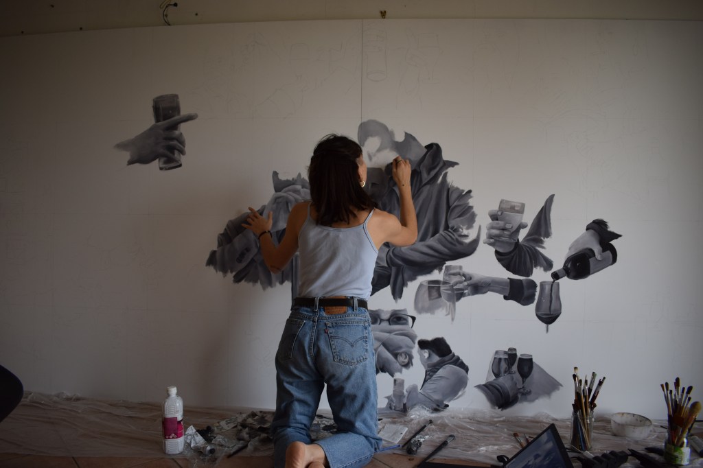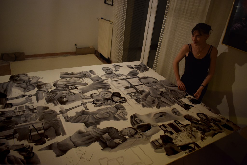 Pour obtenir un résultat au plus près de la réalité physique et atmosphérique, ma démarche artistique a été de prendre des photos aux heures d’ouvertures, pour ensuite les redessiner et assembler les croquis en une maquette proportionnelle aux dimensions réelle.