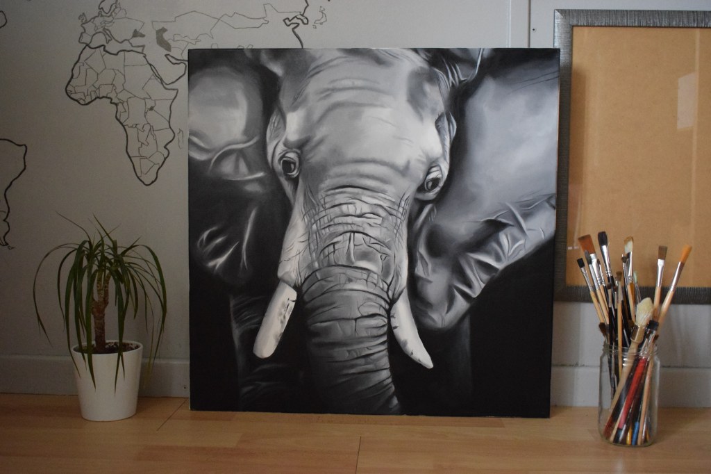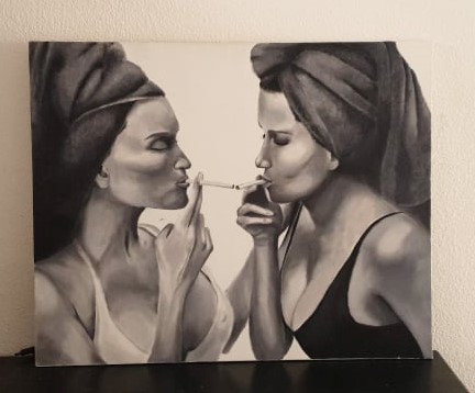 Les premières toiles ont été réalisées en 2014, la plupart sont faites à la peinture à l’huile.