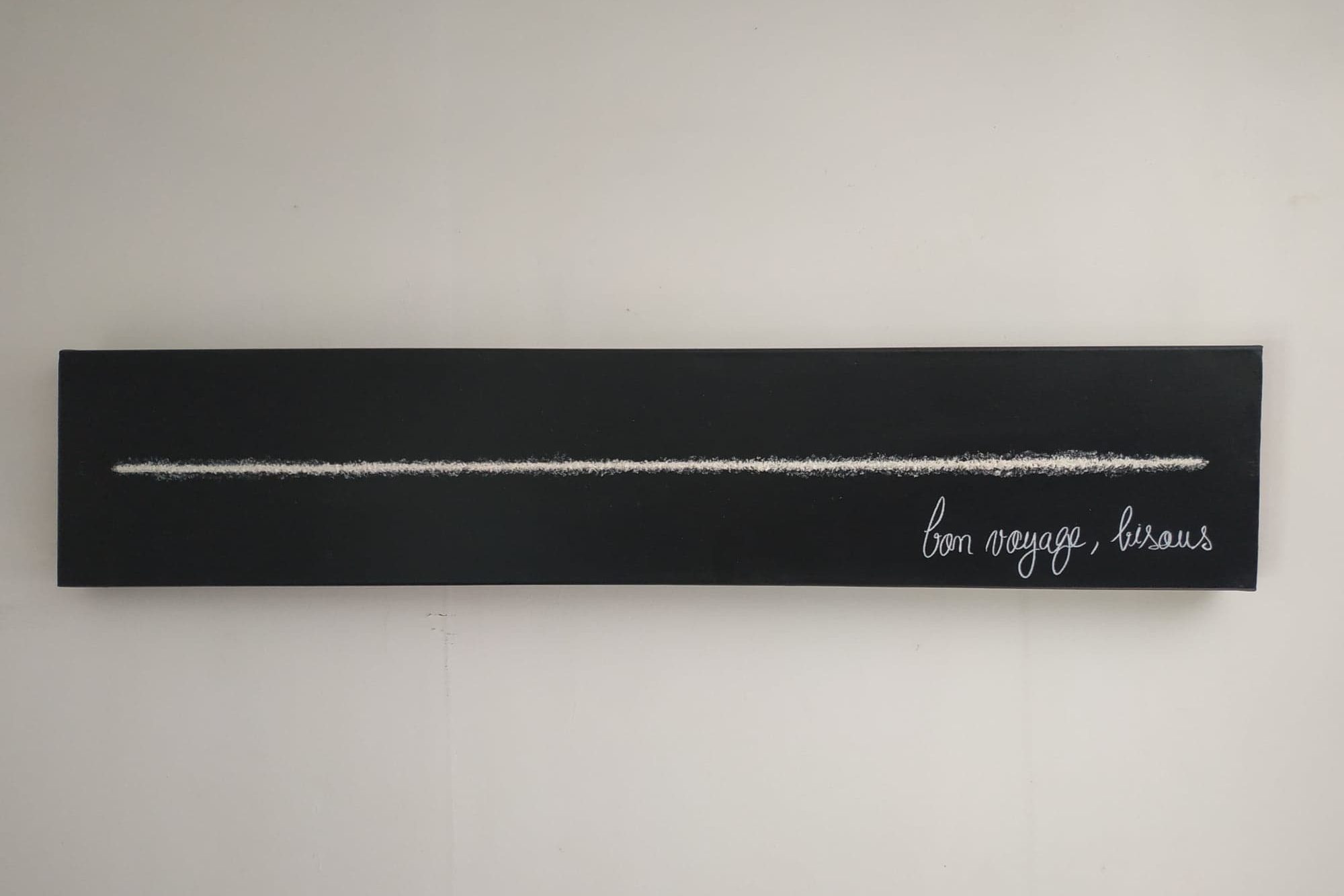 Laurette, Bon voyage, bisous, huile, acrylique et colle à bois sur toile, 2019.
